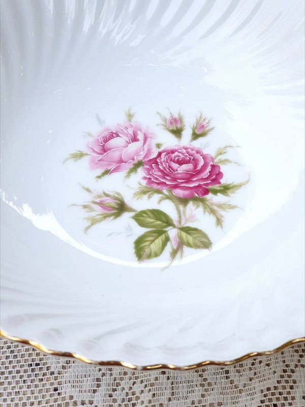 Romantische brood/ salade/ dessertschaal met sfeervolle rozen en een fijn reliëf.