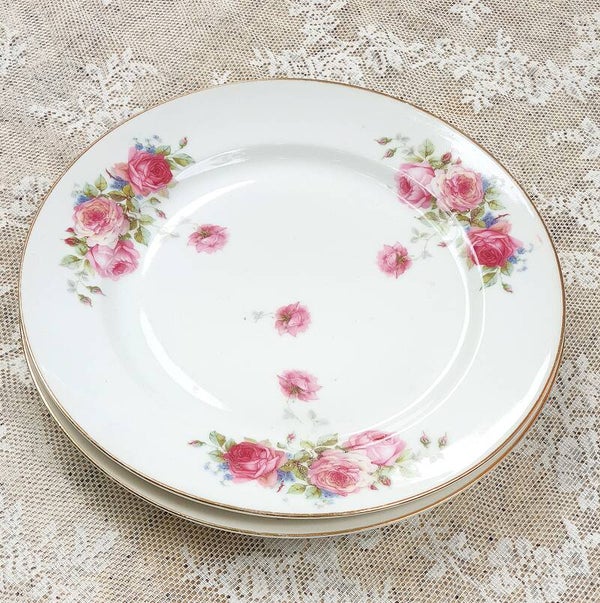 Antiek ronde serveerschaal, taartschaal , hapjesschaal met prachtige roze rozen en een gouden randje.